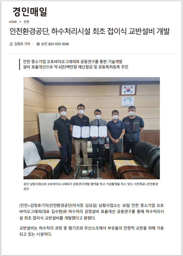 인천환경공단(하수처리 운영공단)과 함께 공동개발