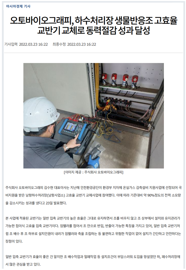 개선 후 76% 동력 절감 / 교반 균일성 검증